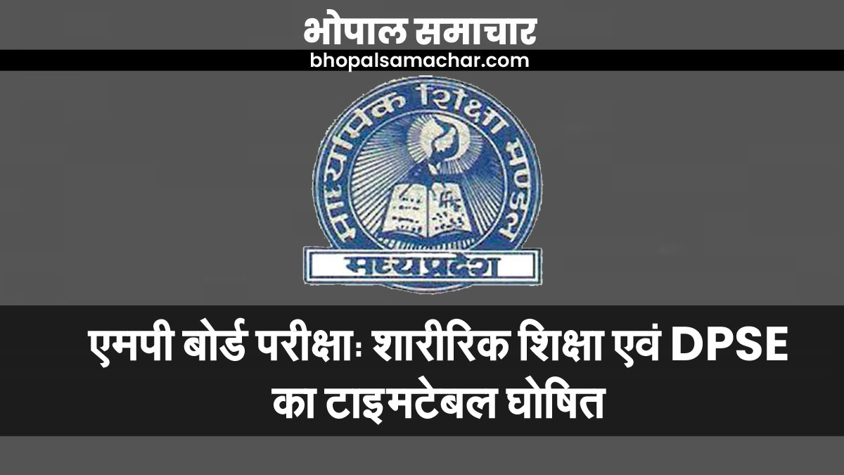 भोपाल। माध्यमिक शिक्षा मण्डल ने वर्ष 2021 के दसवीं, बारहवीं, शारीरिक शिक्षा प्रशिक्षण पत्रोपाधि परीक्षा और DPSE की परीक्षा के कार्यक्रम घोषित किये हैं। 10वीं की परीक्षा 30 अप्रैल से 15 मई तक और बारहवीं की परीक्षा एक मई से 18 मई तक आयोजित की जाएगी। इसी तरह शारीरिक शिक्षा प्रशिक्षण पत्रोपाधि परीक्षा (द्विवर्षीय पाठ्यक्रम) और DPSE परीक्षा (द्विवर्षीय पाठ्यक्रम) 30 अप्रैल से 11 मई तक आयोजित की जाएगी। ये सभी परीक्षाएँ प्रातः 8 बजे से 11 बजे के बीच सम्पन्न होंगी।