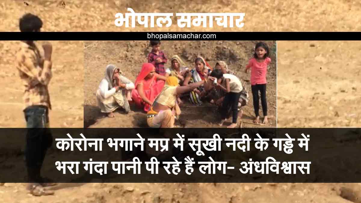 गुना। जब प्रशासन लोगों को जागरूक करने और स्थिति को नियंत्रित करने में असफल हो जाता है तब अंधविश्वास और अफवाहों का दौर शुरू होता है। मध्य प्रदेश के बमोरी ब्लॉक के जोहरी गांव में कुछ ऐसा ही हो रहा है। CORONA से भयभीत ग्रामीण एक सूखी हुई नदी के गड्ढे से निकल रहा गंदा पानी पी रहे हैं। अफवाह फैलाई गई है कि इस पानी को पीने से CORONA नहीं होगा।