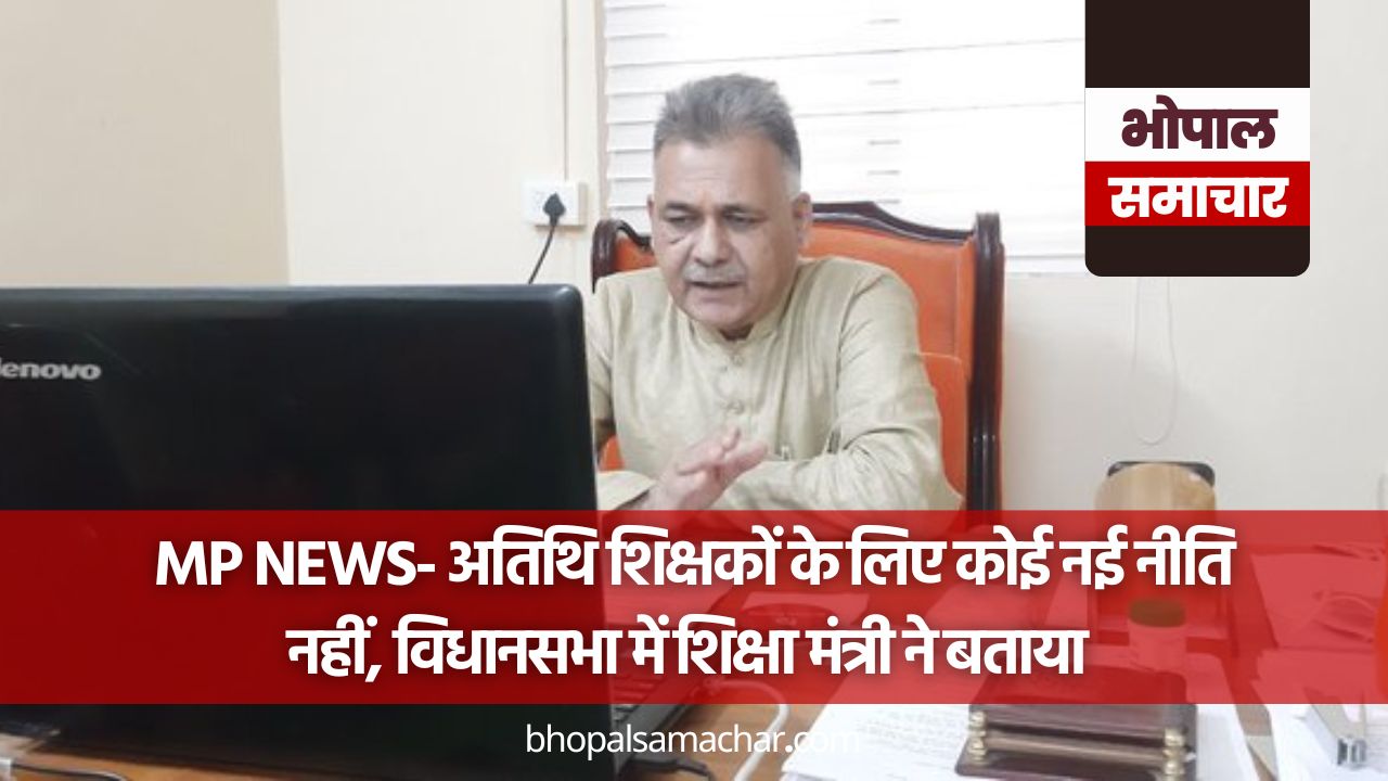 विधानसभा में जो प्रश्न पूछा गया कि अतिथि शिक्षकों के लिए सरकार की क्या नीति है और क्या नीति बनाई गई है जिस पर शिक्षा मंत्री इंदर सिंह परमार ने जवाब दिया अतिथि शिक्षकों के लिए कोई नीति नहीं बनाई गई है। उन्होंने दावा किया है कि अन्य किसी राज्य में भी अतिथि शिक्षकों के लिए कोई बेहतर नीति नहीं बनाई जा रही। उन्होंने बताया कि मध्यप्रदेश में वर्तमान नीति के अनुसार ही अतिथि शिक्षकों से काम लिया जाएगा।