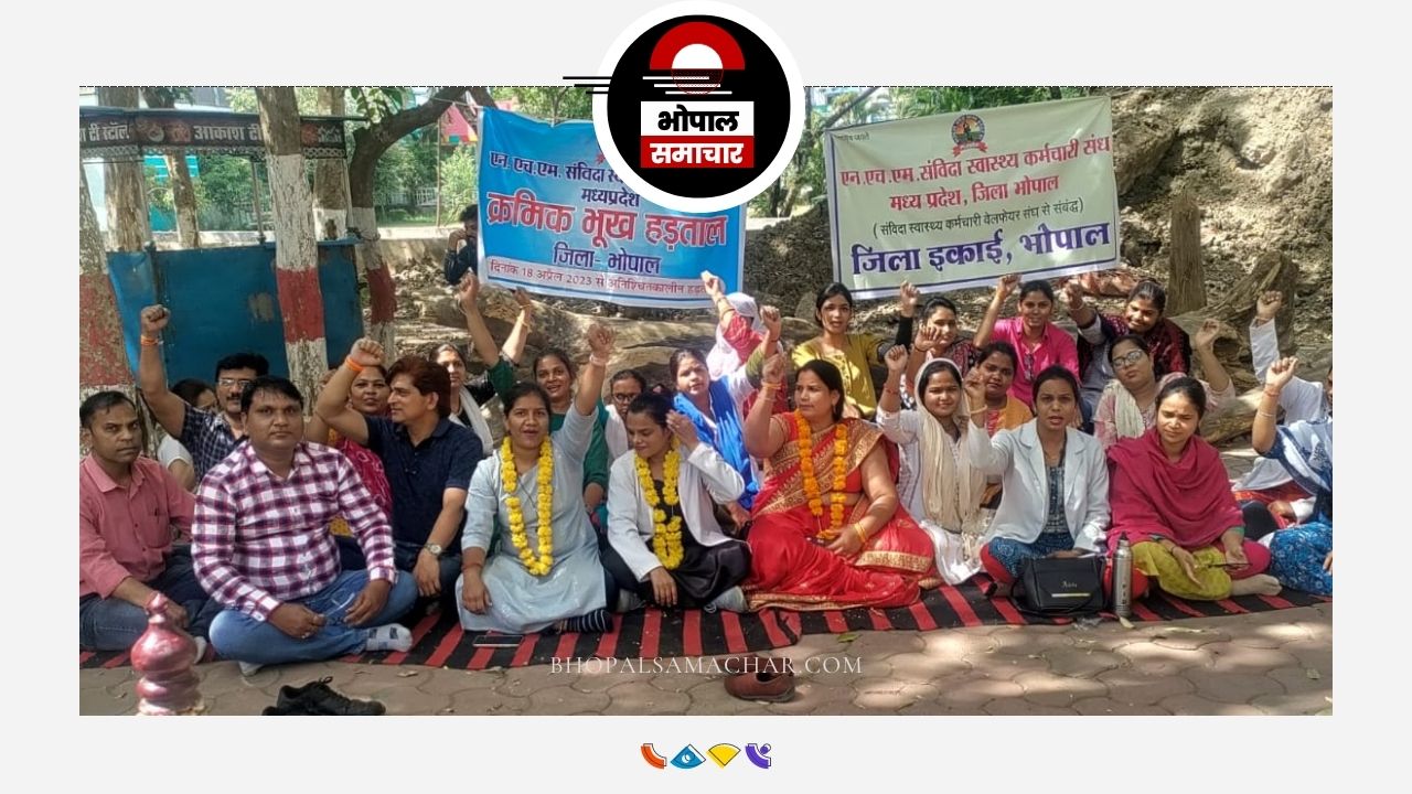 भोपाल। राष्ट्रीय स्वास्थ्य मिशन के कर्मचारी आज अपनी विभिन्न मांगो को लेकर जेपी अस्पताल परिसर में संघ के प्रदेश अध्यक्ष विजय ठक्कर के नेतृत्व में क्रमिक भूख हड़ताल पर बैठे। आज भूख हड़ताल पर बैठने वालों में कमला देवी, नेहा चौरे, और मीना शुक्ला शामिल हुईं।